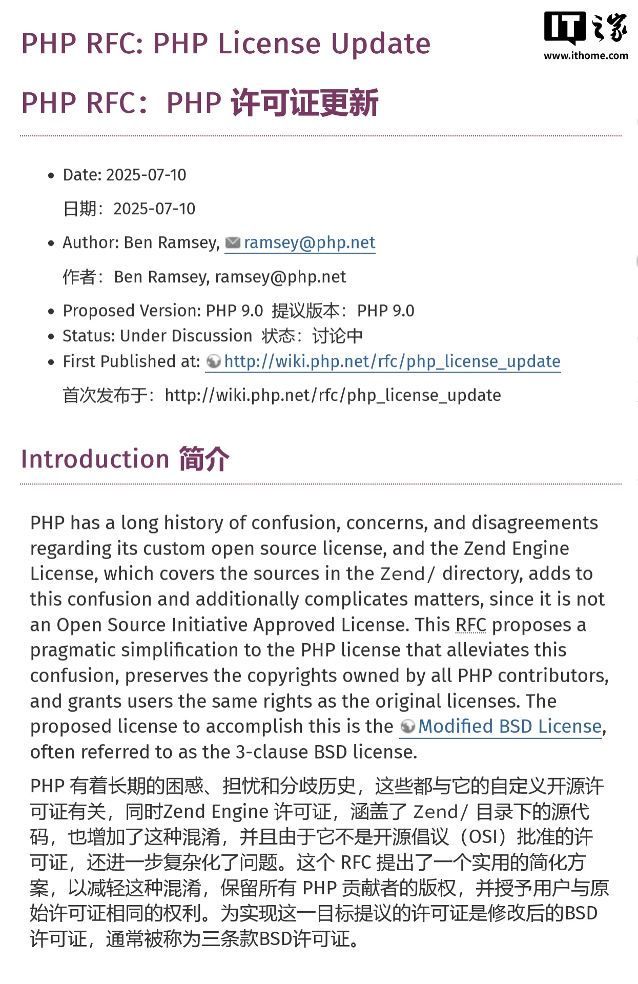 PHP 9.0 有望调整为 Modified BSD 许可:简化条款,增强兼容性
